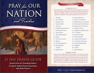 This inspirational 31-Day Prayer Devotional will help you pray for our nation and for leaders on all levels (national, state, local, neighborhood).